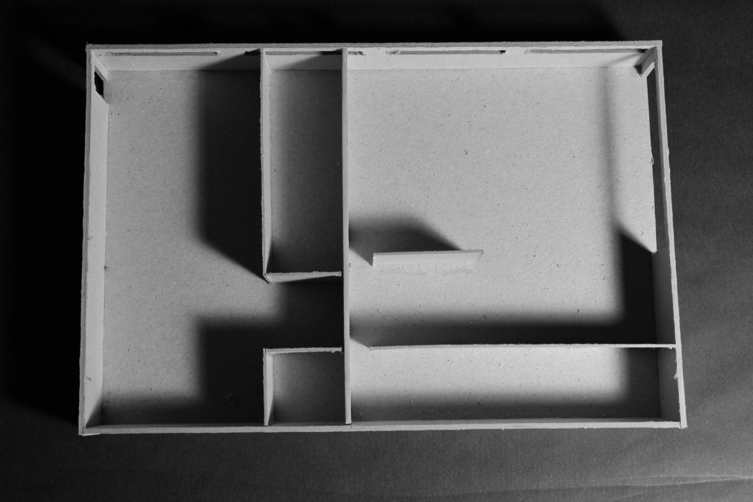 Todas las habitaciones se distribuyen alrededor de un núcleo/escalera que surge junto con un patio que aporta luz al interior de la vivienda, a los espacios distribuidores.