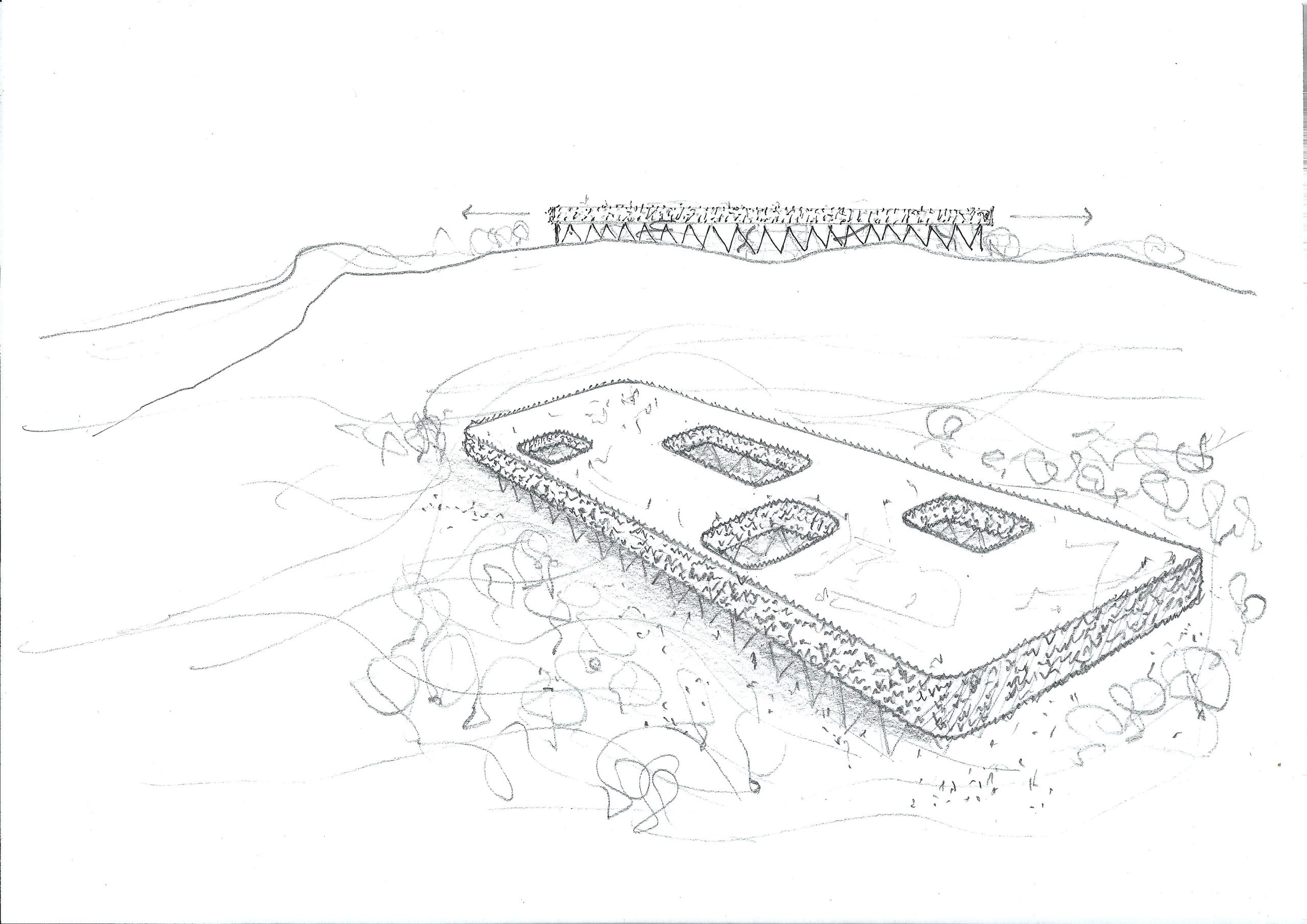 Desde lo lejos el proyecto surge como un gran reptil entre las dunas